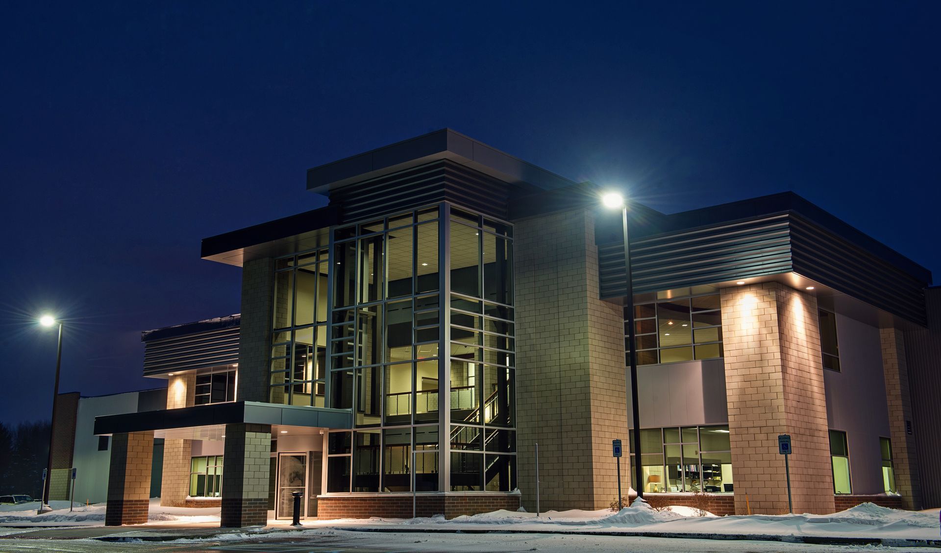 The building itself is comprised of a central two-story 45,509 sq.ft. office/training space with partial basement storage that is flanked by a 12,724 sq.ft. EMS Garage to the east, and the 8,568 sq.ft. U of M Survival Flight hangar to the west.