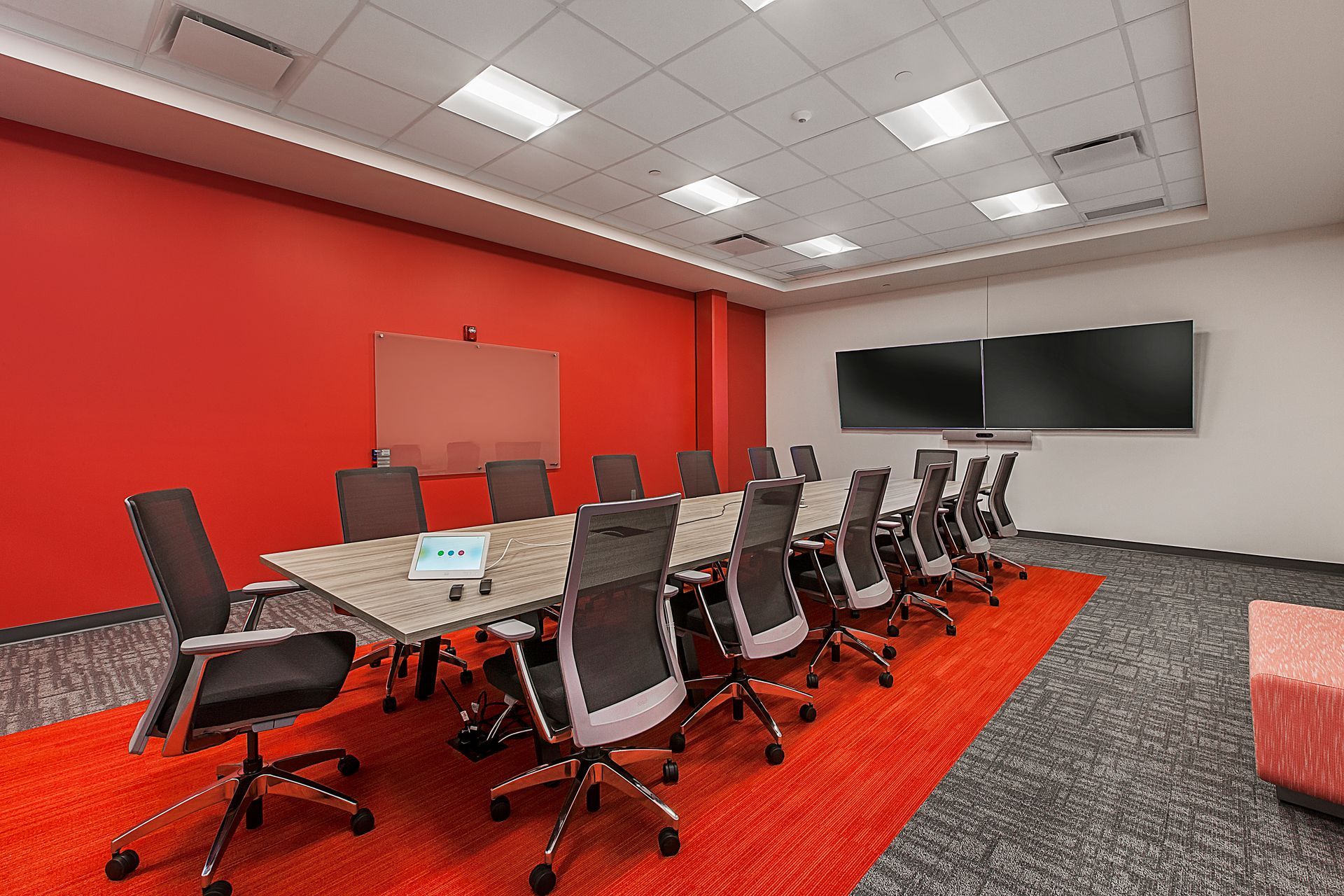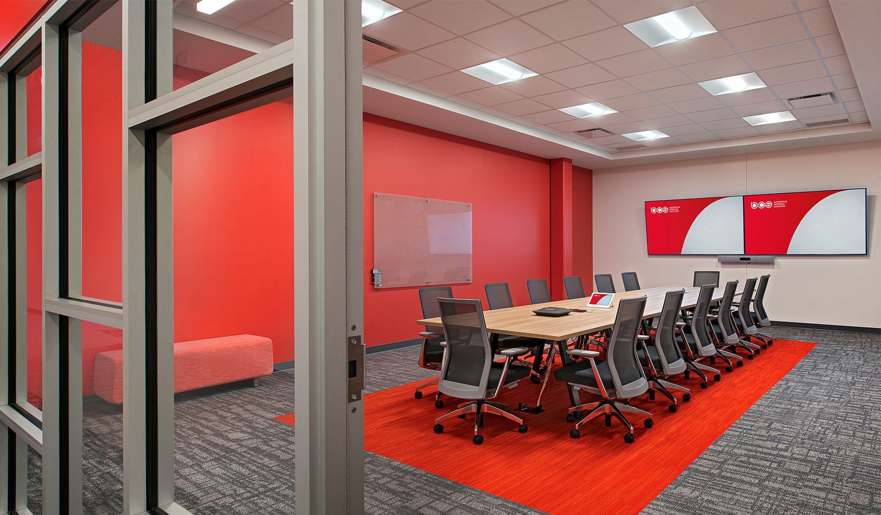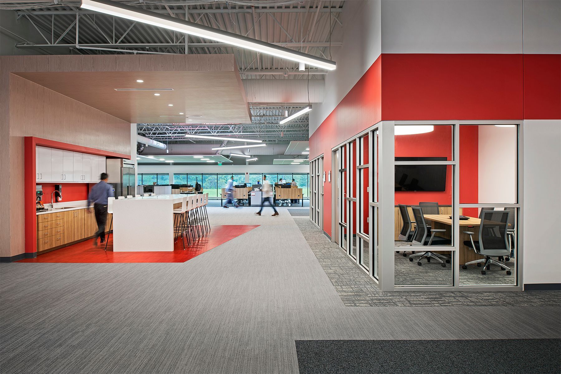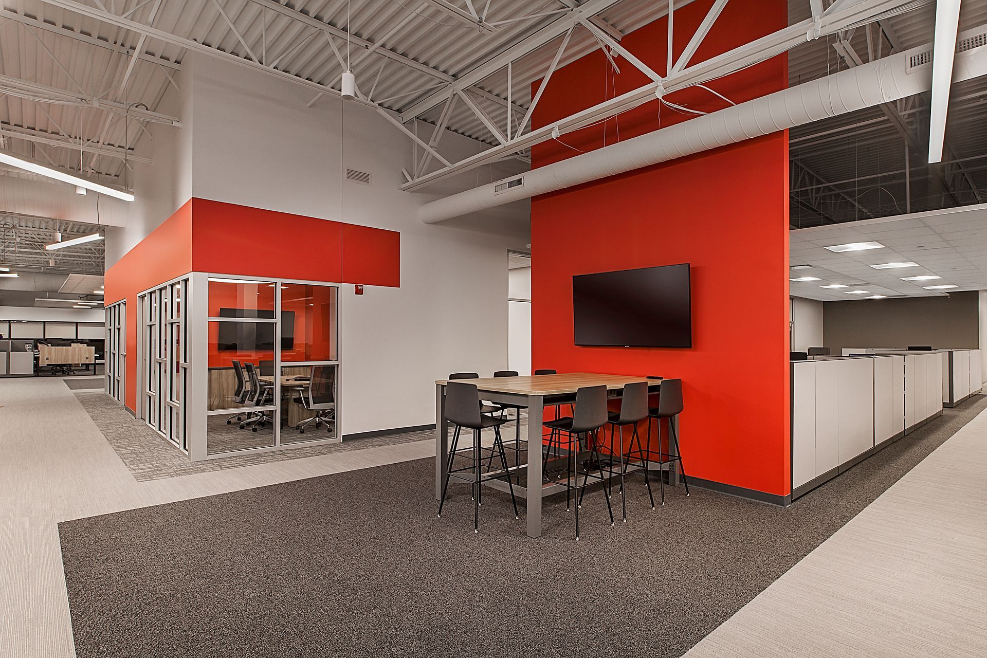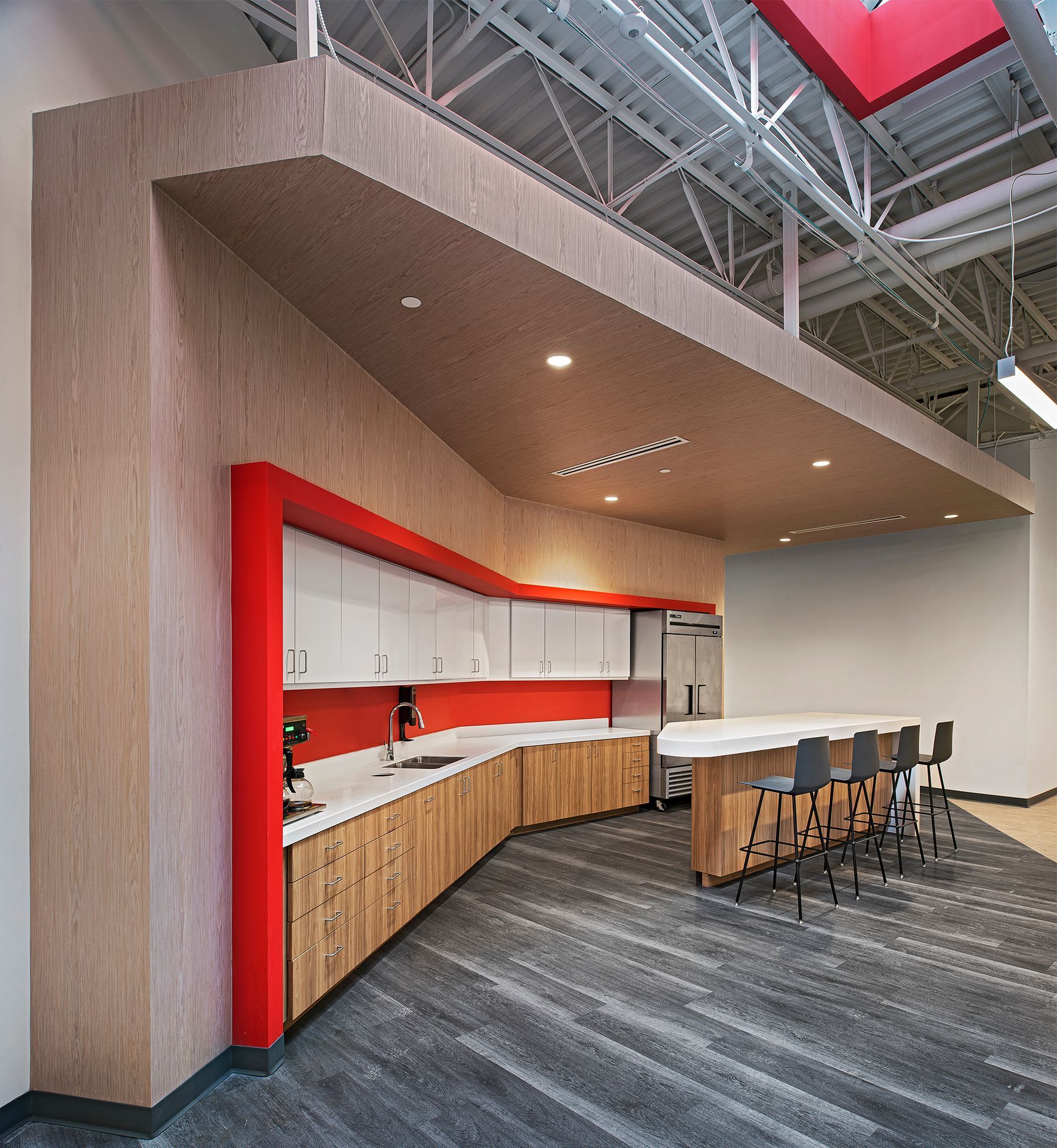 Exterior renovations included the main entrance and the identity wall facing the freeway. BCS Automotive Interface Solutions wished for an environment which would attract new talent as well as create a space where existing employees would be happy to work.