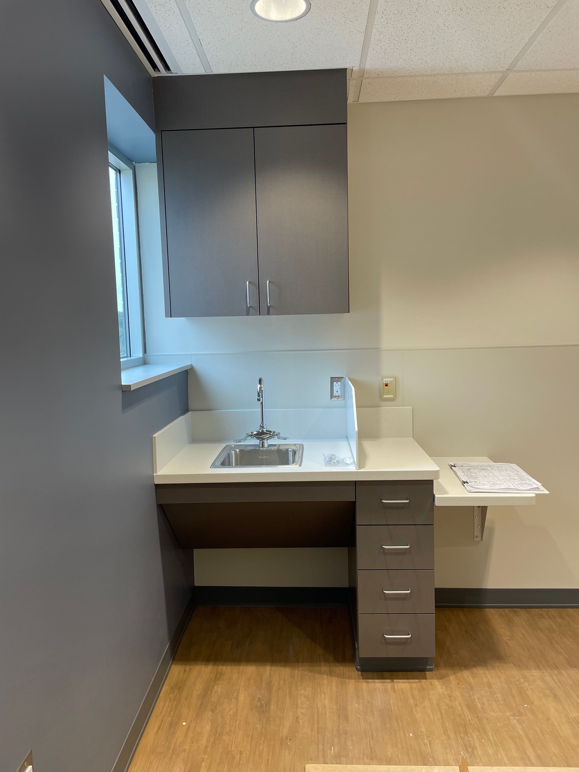 The Maternal Fetal Medicine practice was relocated from the Hospital to the Medical Office Building on the Oakland Campus to allow for other functions to expand in to hospital space. The relocation allowed for the new space to meet the current Facilities Guidelines Institute requirements at the same time providing better patient flow and material selections promoting patient wellbeing and health.