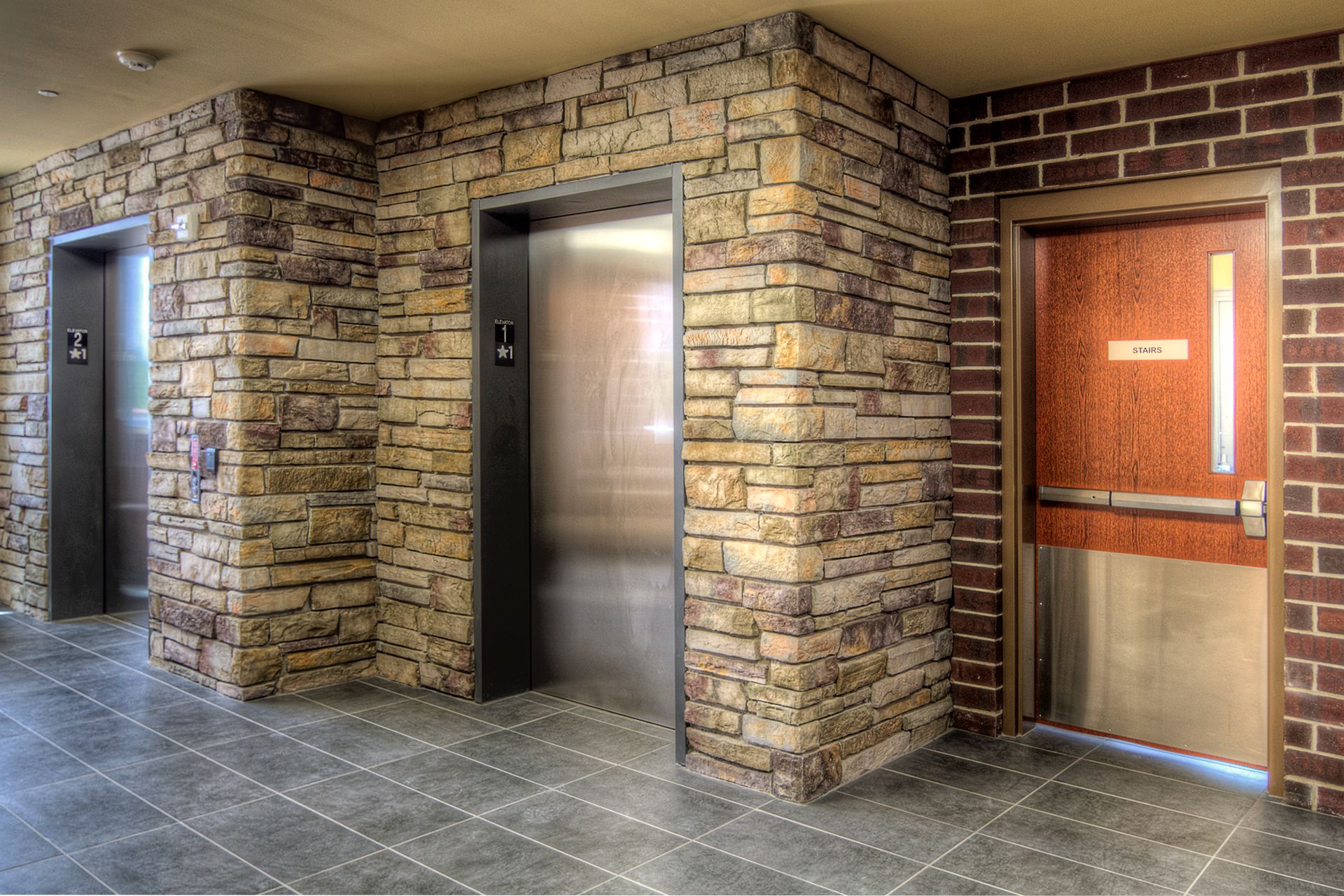 The glass box, which houses the waiting room on each floor, bridges the two masonry components and allows patients to take in the beautiful views that surround the site, adding a sense of serenity to the space.