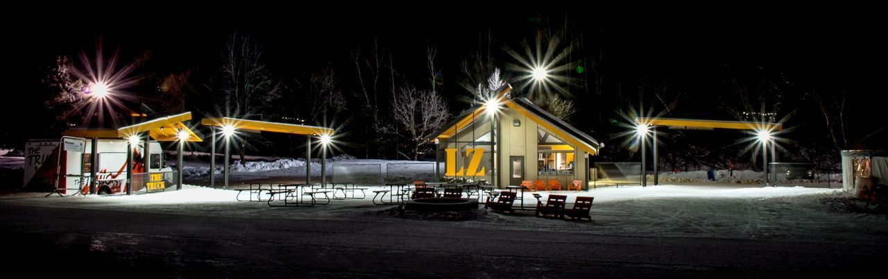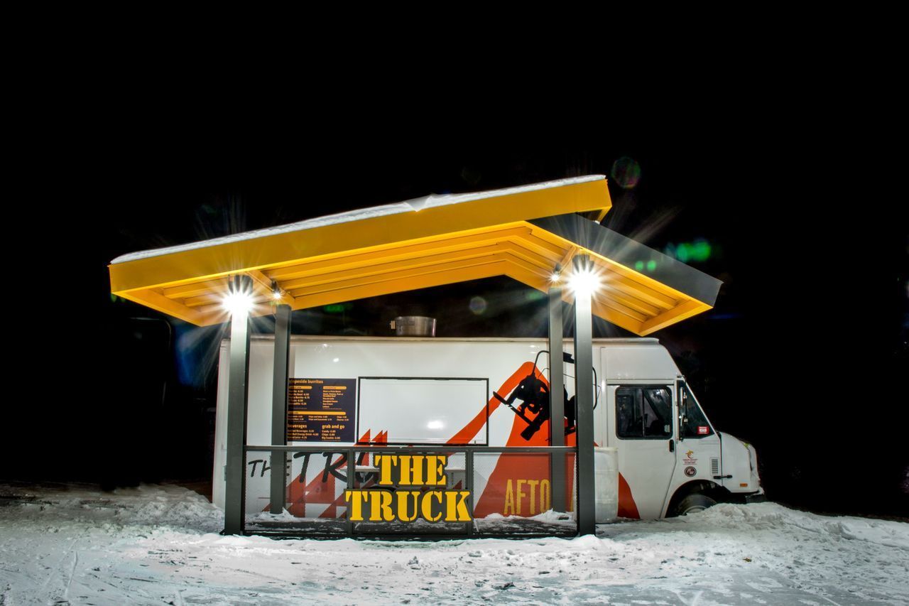 The only existing building on-site (old tubing rental office) needed a facelift to anchor the new Landing Zone, as well as a canopy to shelter spectators viewing snowboarders on the slopes above. Altogether, the design team achieved a fresh facelift despite tight budgetary and time constraints.