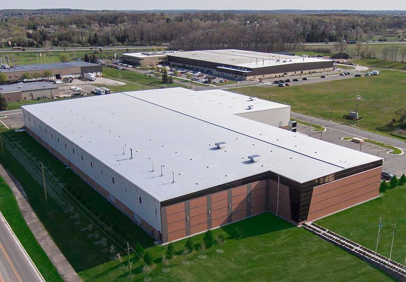 Building 2 for the Atlas Copco Corporation was originally designed as an office and industrial building, but after the change in ownership, it was determined that it was to be industrial only. The owner still wanted an office appearance facing Grand River. As a result, the facade facing Grand River has a 2-story office appearance with brick and tinted glass.