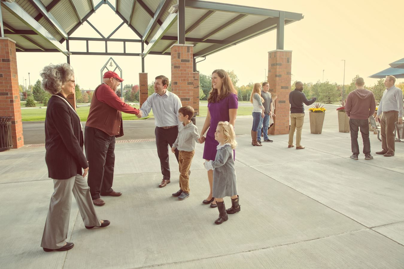 Circulation ways combine social gathering, group information, and a two-level playland. Large windows highlight the cross and exhibit the great hospitality inside and outside at the large, skylit canopy and bell tower.